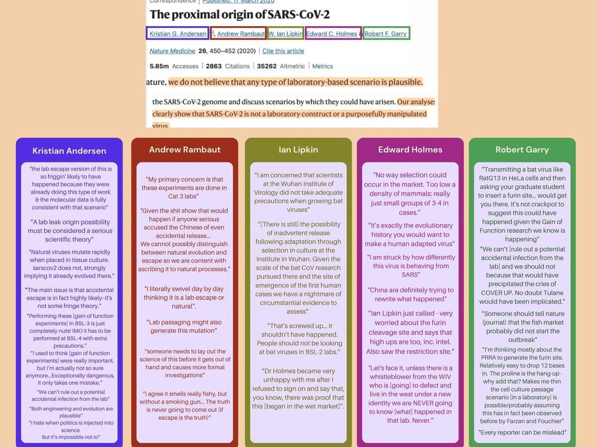 Dr. Andrew Rambaut: "Given the shit show that would happen if anyone serious accused the Chinese of even accidental release... We cannot possibly distinguish between natural evolution and escape so we are content with ascribing it to natural processes."