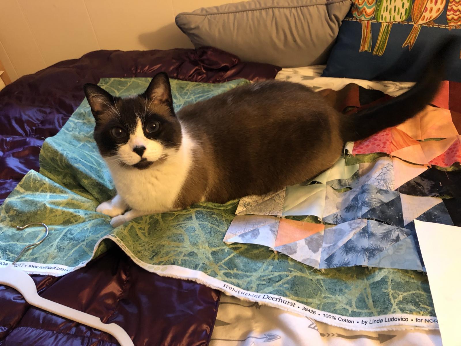 My kitty, Diesel, trying to help me with figuring out my fabric